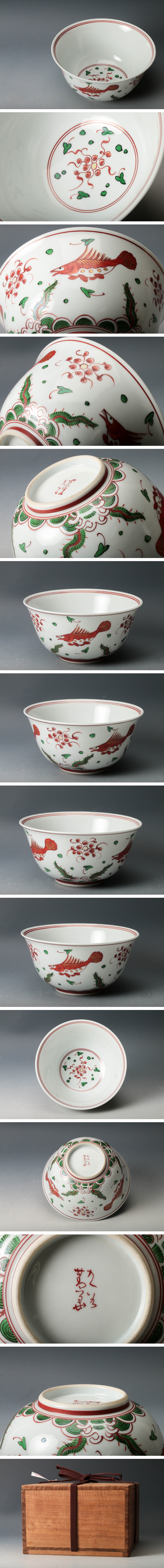 【佳香】須田青華 赤絵藻魚文鉢 木箱 本物保証