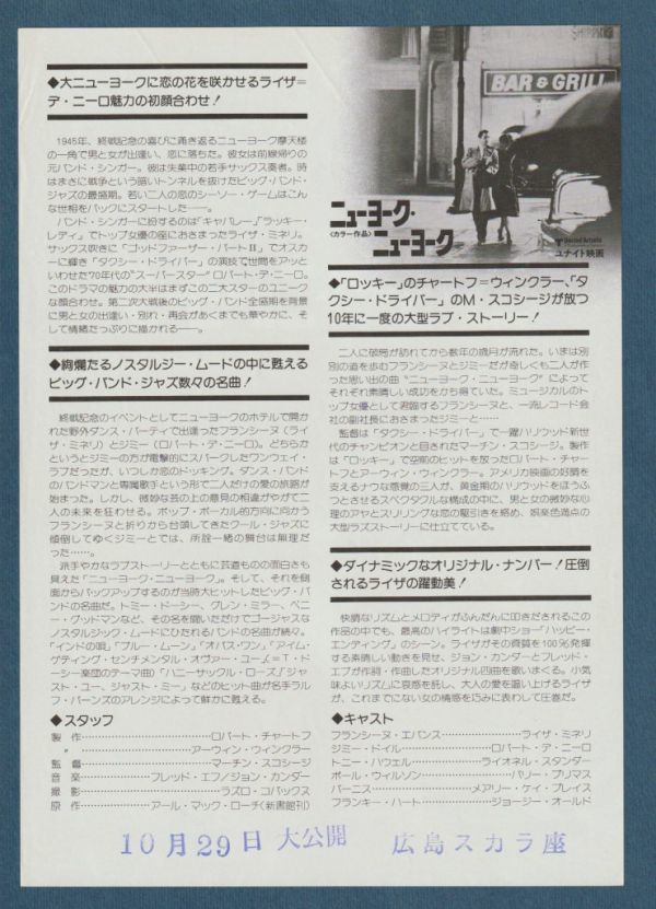チラシ■1977年【ニューヨーク・ニューヨーク】[ B ランク ] 広島スカラ座 スタンプ/マーティン・スコセッシ ロバート・デ・ニーロ 收藏