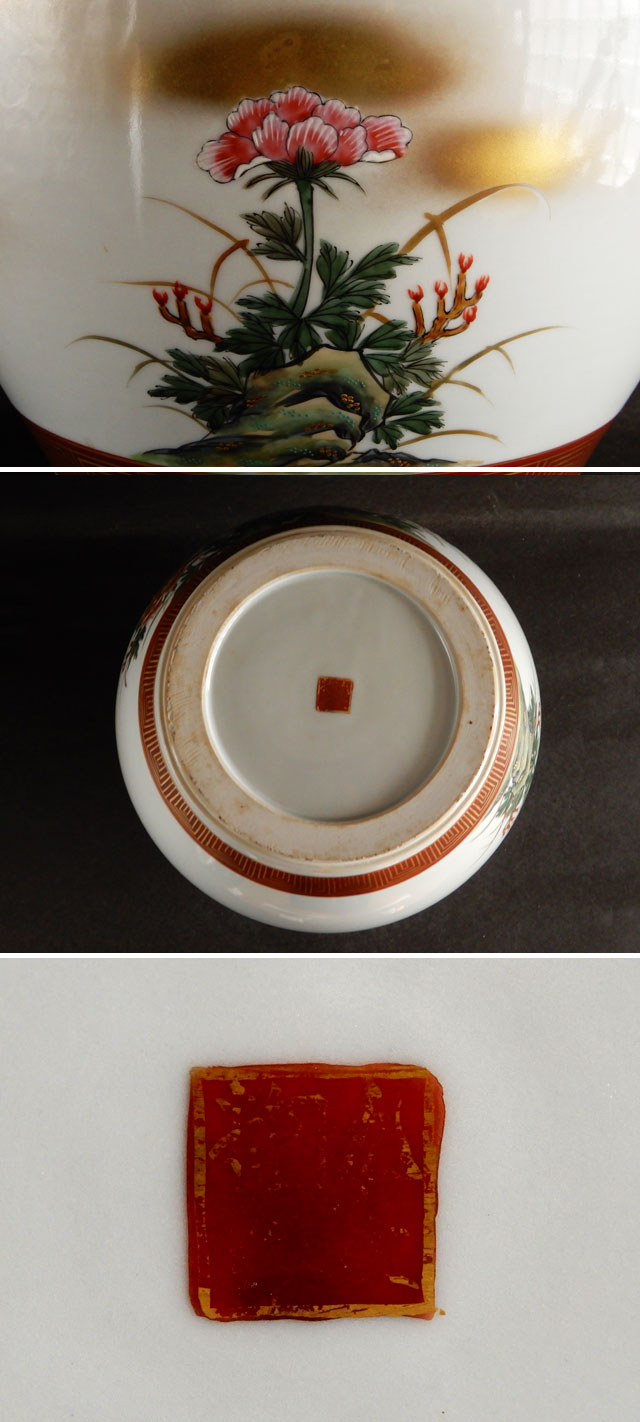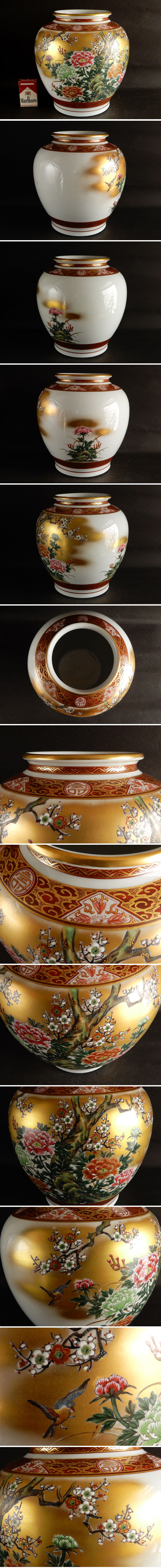 九谷 西田 掬翠 金彩色絵花鳥図 花瓶 高さ約30㎝ 收藏