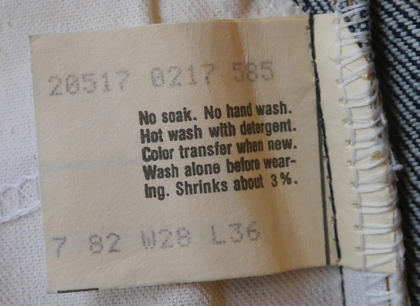 内側白タグの記載が7 82 585なので1982年7月に585番テキサス州のウィチタフォールズ工場で生産された517と確認できます。