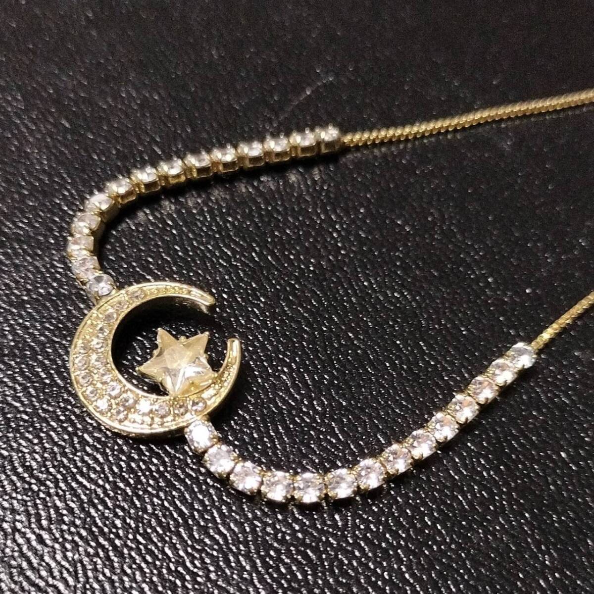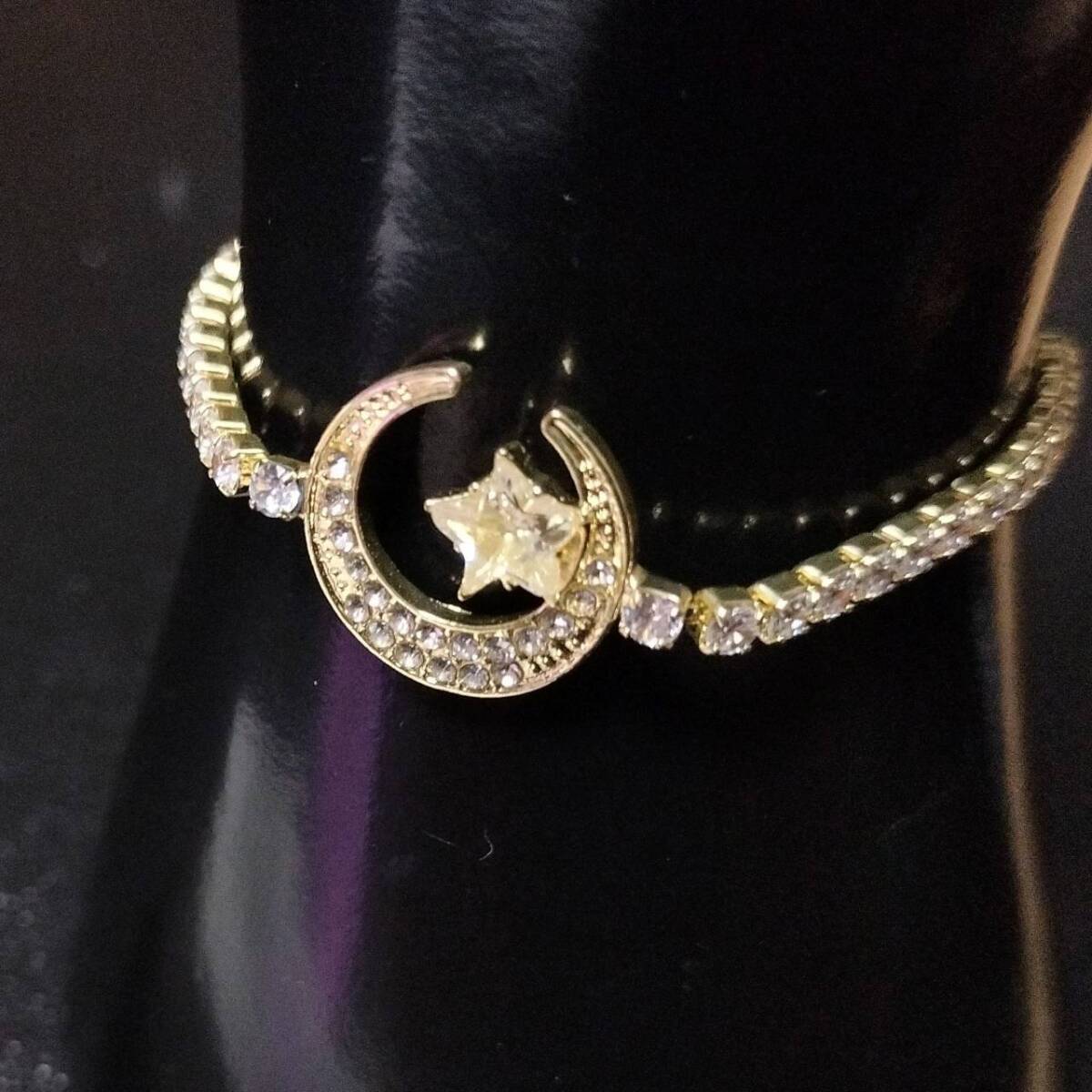 新品未使用 ブレスレット 腕輪 ゴールド チェーン cz 月 星 ムーン スター レディース 韓国 調整可能 キュービックジルコニア #D81-3 收藏