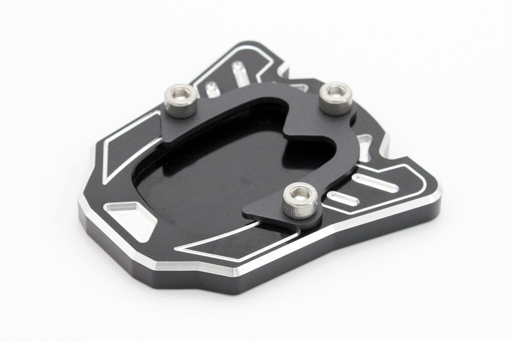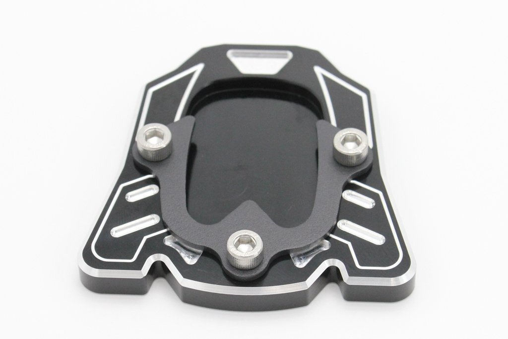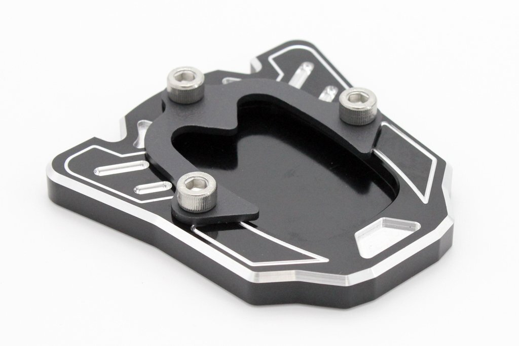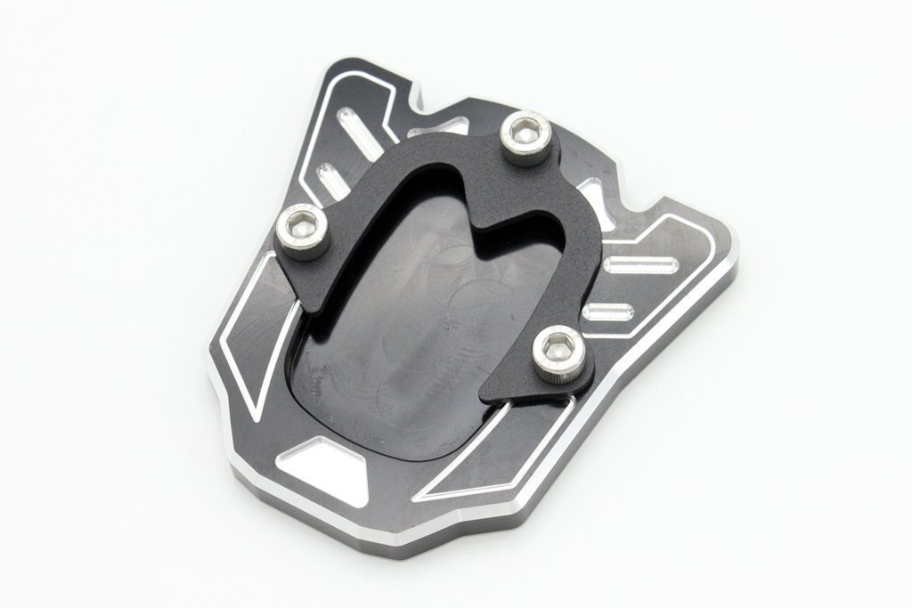 | 新品 サイドスタンドプレート ブラック 汎用のサイドスタンドプレート ブラックです 削り出しのデザインがオシャレです!! スタンドのドレスアップやショートスタンドの調整に最適です 詳しい形状は写真でご確認下さい カラー:ブラック(黒)アルマイト サイズ ボディ : W77mm × H79mm 穴径 : 52mm × 37mm 933×1 |