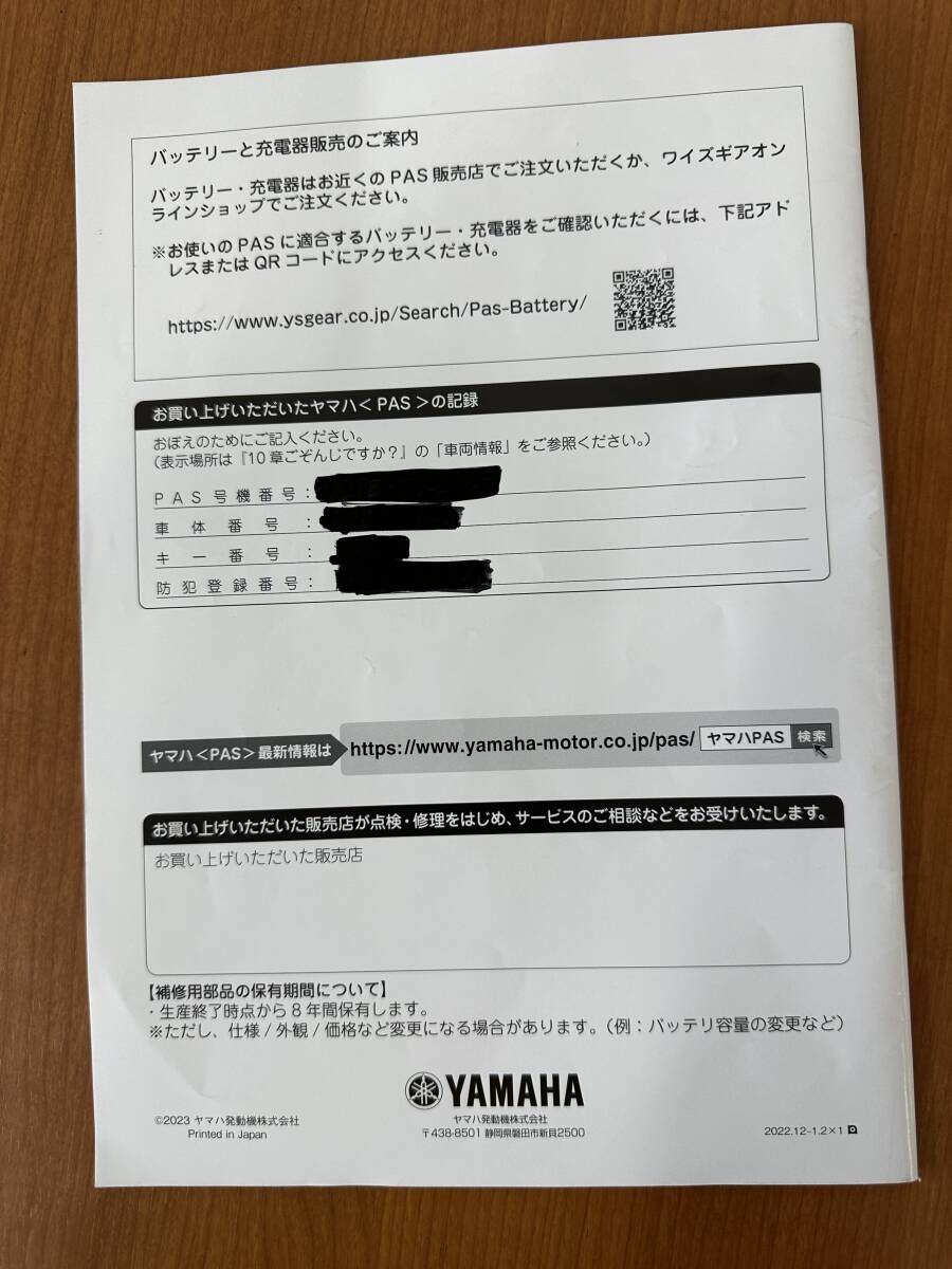 ■YAMAHA PAS CITY-X PA20CX 取扱説明書■ 收藏
