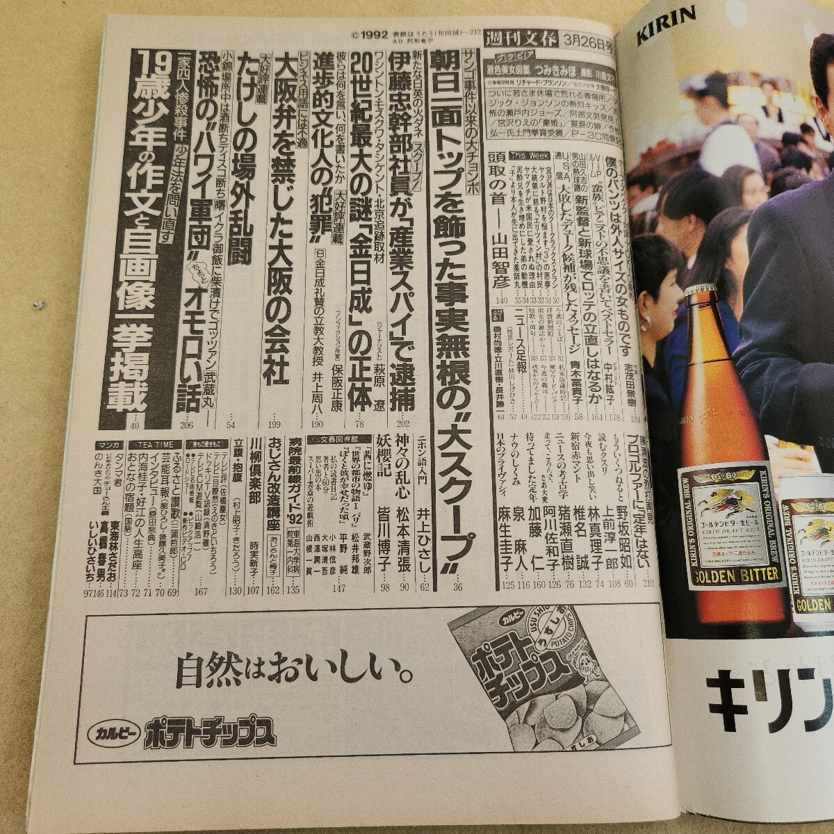 k07-014 週刊文春 平成4年3/26発行 第34巻 第12号 編集人 花田紀凱 発行人 堤堯 傷・破れ有 ヤケ有 ヨレ有 收藏