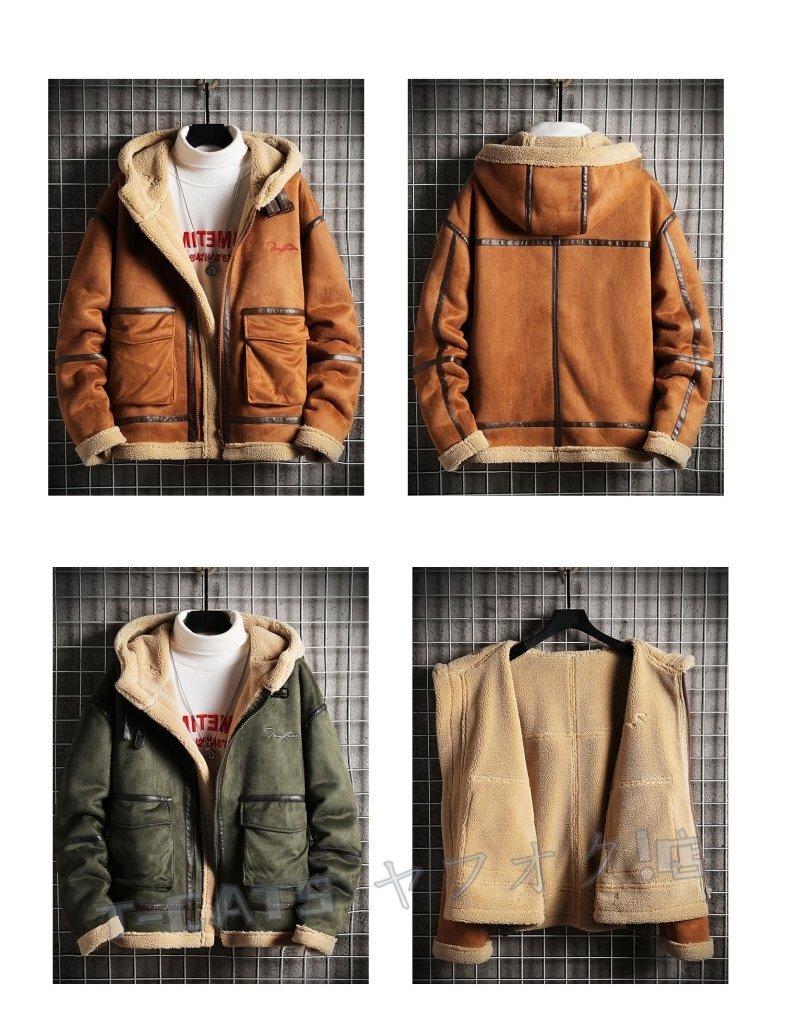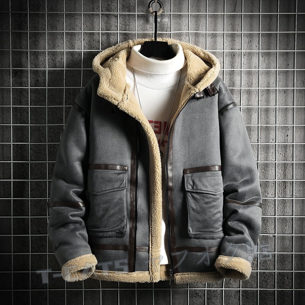 新品ムートンコート メンズ 刺繍 厚手 超防寒 フライトジャケット アウター ジャンバーブルゾン ファーコート ライダース グレー 3XL 收藏