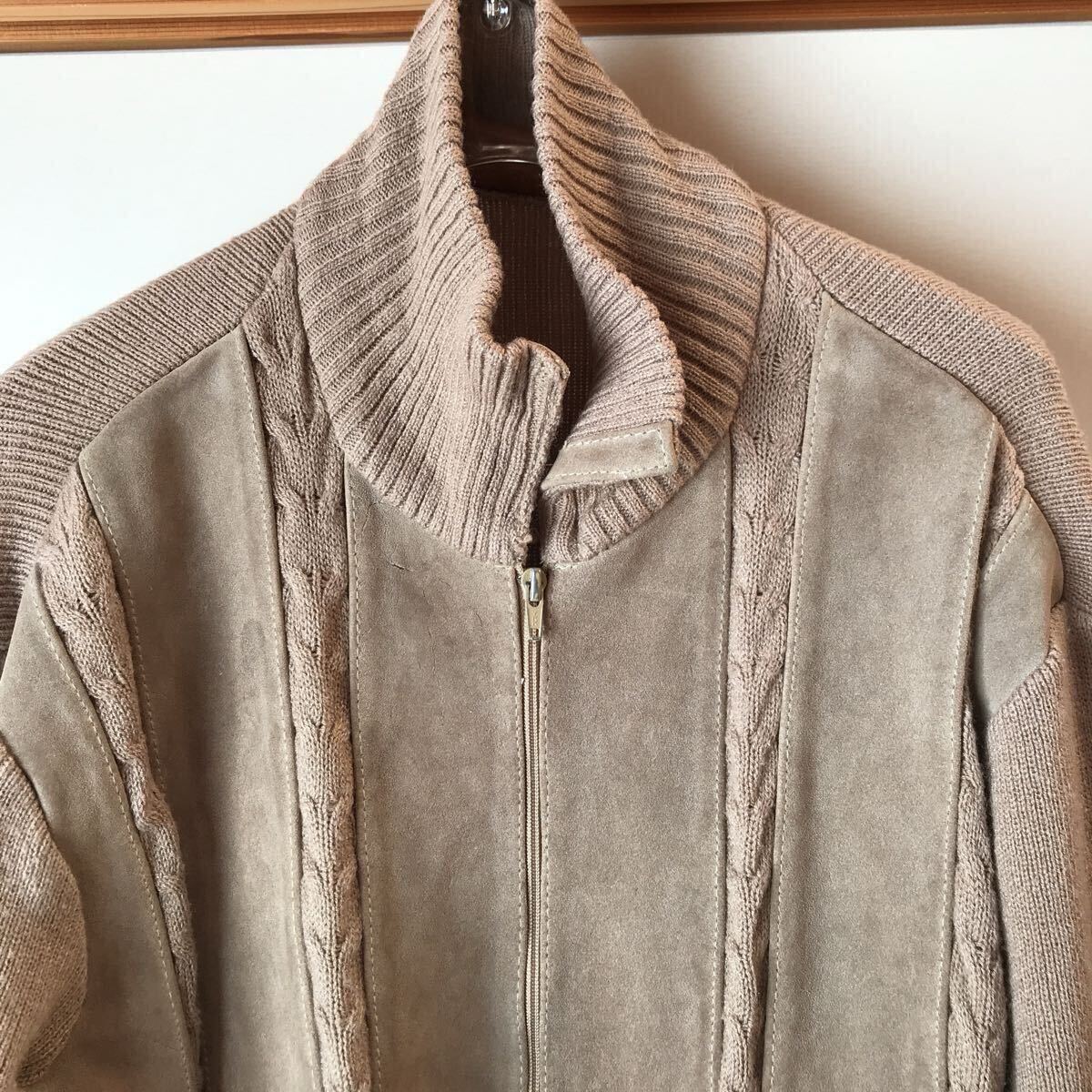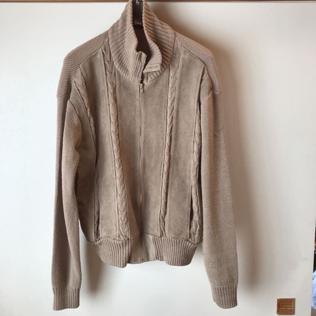 LM リアルレザーX ニット 60’s 70s VINTAGE ジップアップ ブルゾン ベージュ系 カーディガンブルゾン 收藏