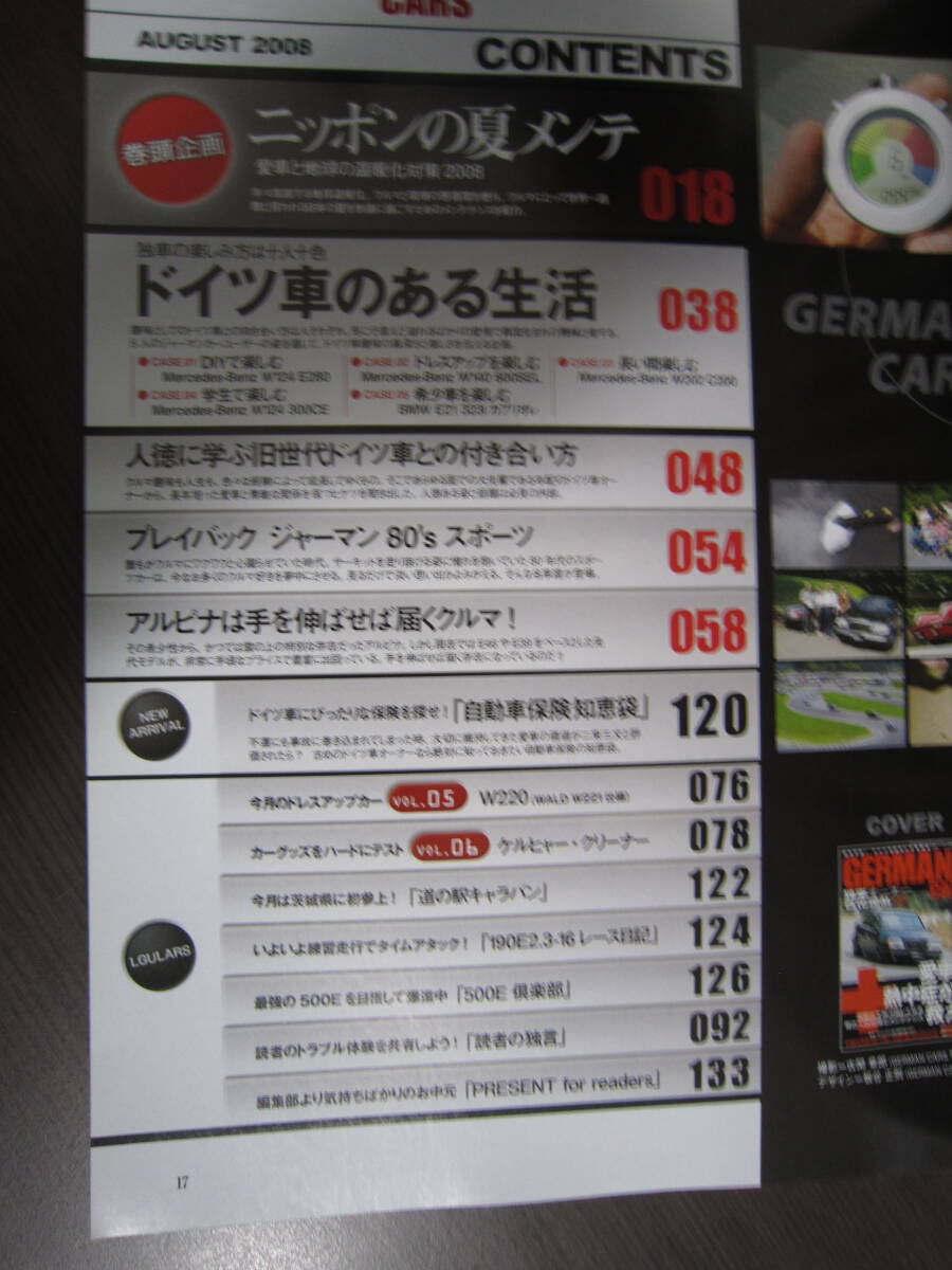 ★GERMAN CARS 2008年8月★愛車を熱中症から救え★ジャーマンカーズ★メルセデスベンツ BMW W124 500E倶楽部 190E ドイツ車 雑誌 本 收藏