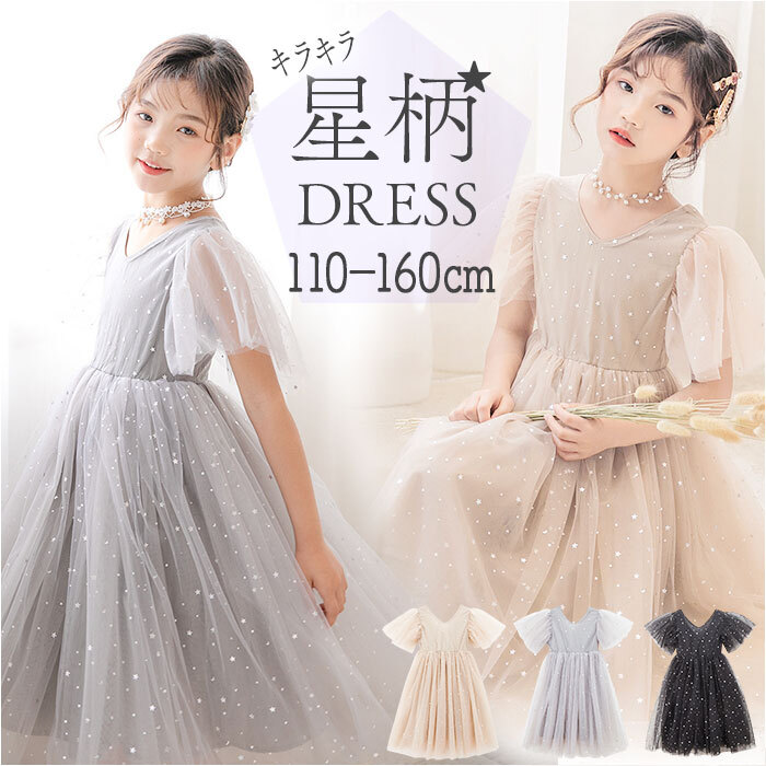 ☆ ライトベージュ ☆ 160cm ☆ 子供 ドレス 女の子 フォーマル ドレス 半袖 フォーマルドレス チュールワンピース ロングワンピース 收藏