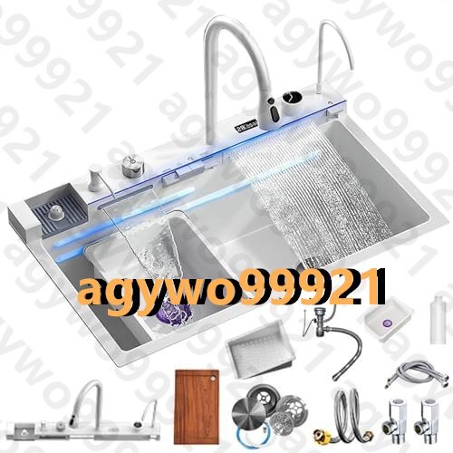 スマートデジタルディスプレイキッチンシンク、ワンピース蛇口付きダブルアウト水とステンレス製食器洗いシンク、3つの排水モード 收藏