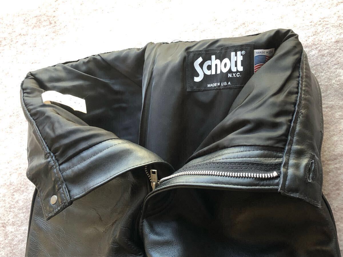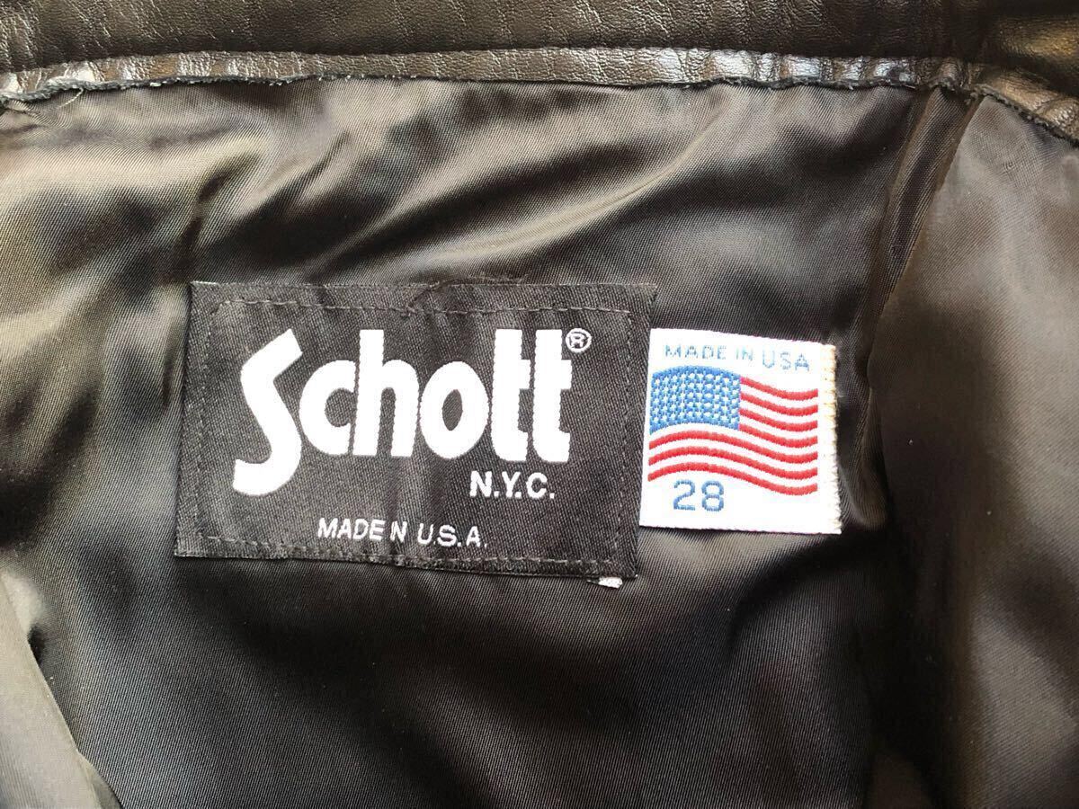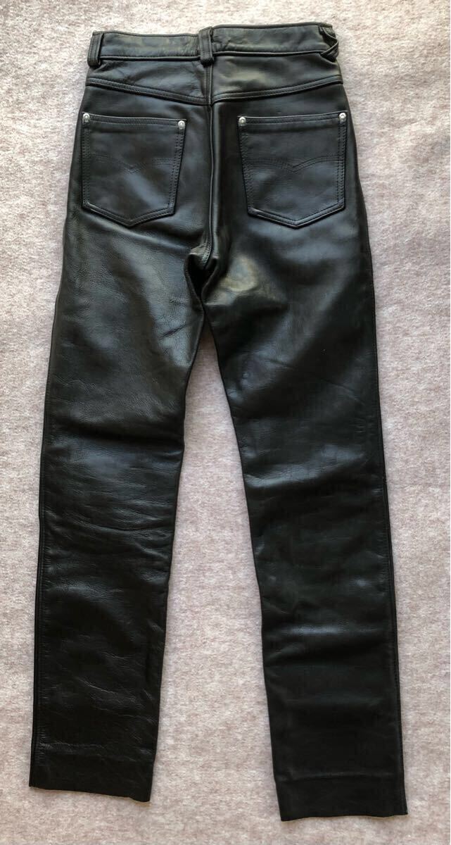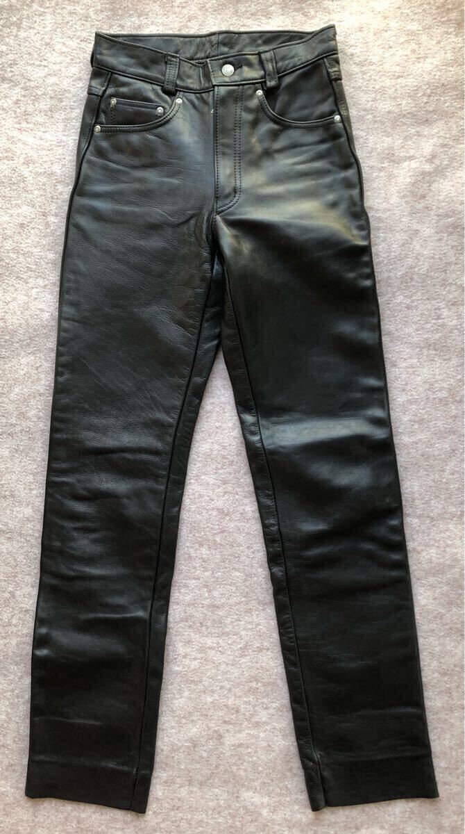 Schott ショット 牛革 レザーパンツ 28インチ 未裾直 切りっぱなし USA アメリカン製 黒 ブラック ツーリング バイク 收藏