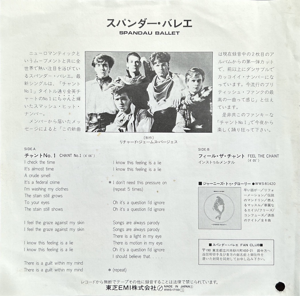 [7] Spandau Ballet- Chant No. 1 (I Dont Need This Pressure On)/レコード プロモ盤 ユーロビート Electronic Synth-pop 收藏