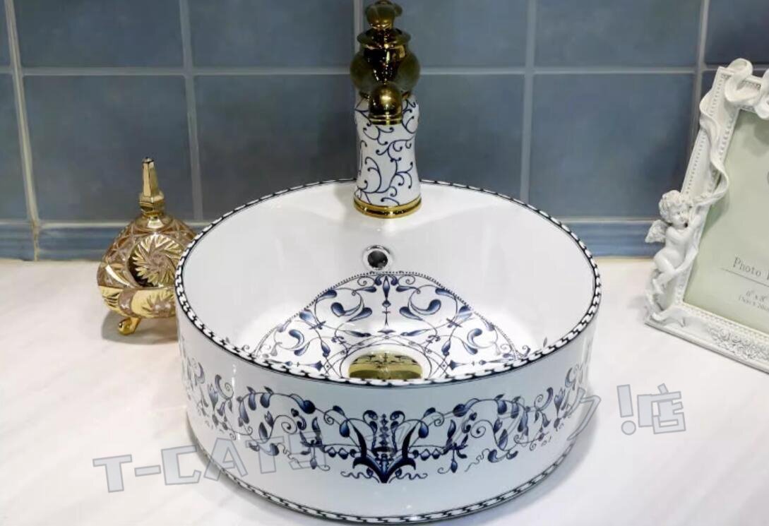☆新品北欧 洗面台 洗面ボウルセット 洗面ボール 陶器 手水鉢 手洗器 手洗い鉢 洗面器 蛇口 排水金具付き 收藏