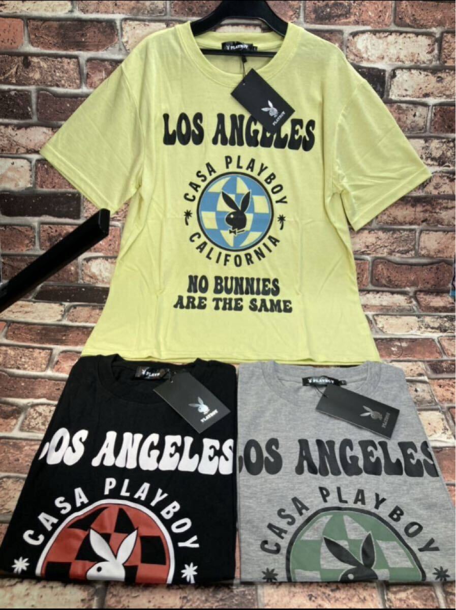 送料無料!人気ブランド【プレイボーイ】プリント入り男女兼用 綿混半袖TシャツA(画像から)1枚 收藏