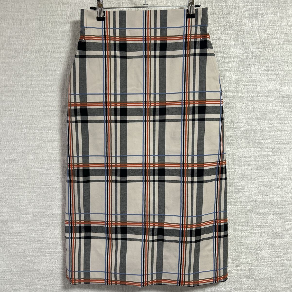 チェック柄のタイトスカート、サイドファスナー付きでウエストはゴム入り。 - デザイン: チェック柄 - スタイル: タイトスカート - ウエスト: ゴム入り - ファスナー: サイドファスナー ウエスト68、着丈76、スリット長さ26センチ。 目立ったダメージなく良品です。 ややストレッチあります。ウエストはゴムです。