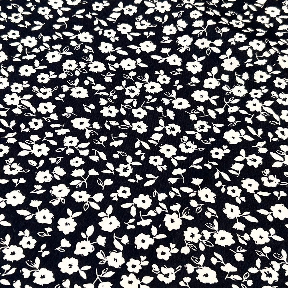 RF3 プリント フラワー コットン100%生地 レトロお花③黒 幅140cm×48cm ハギレ 生地 ハンドメイド 輸入 收藏