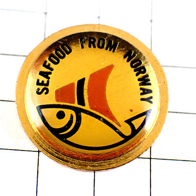 ピンバッジ・ノルウェーの食品シーフード魚介類ノルウェイ国旗 SEAFOOD NORWAY◆フランス限定ピンズ◆レアなヴィンテージものピンバッチ 收藏