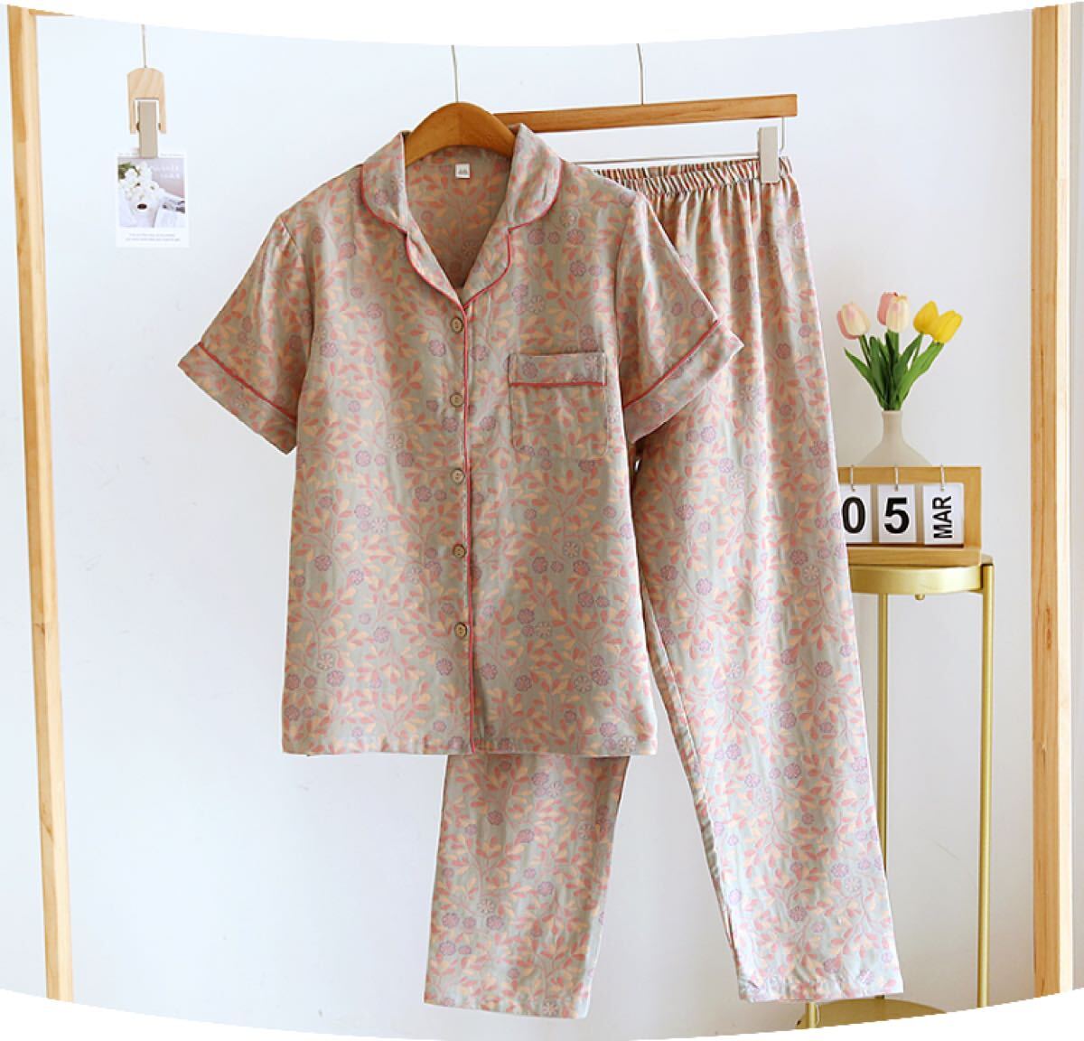 新品パジャマ夏半袖上下セットMレディース綿100%先染め長パンツタグ付き入院入所介護プレゼント50代60代 春秋夏寝巻き 收藏