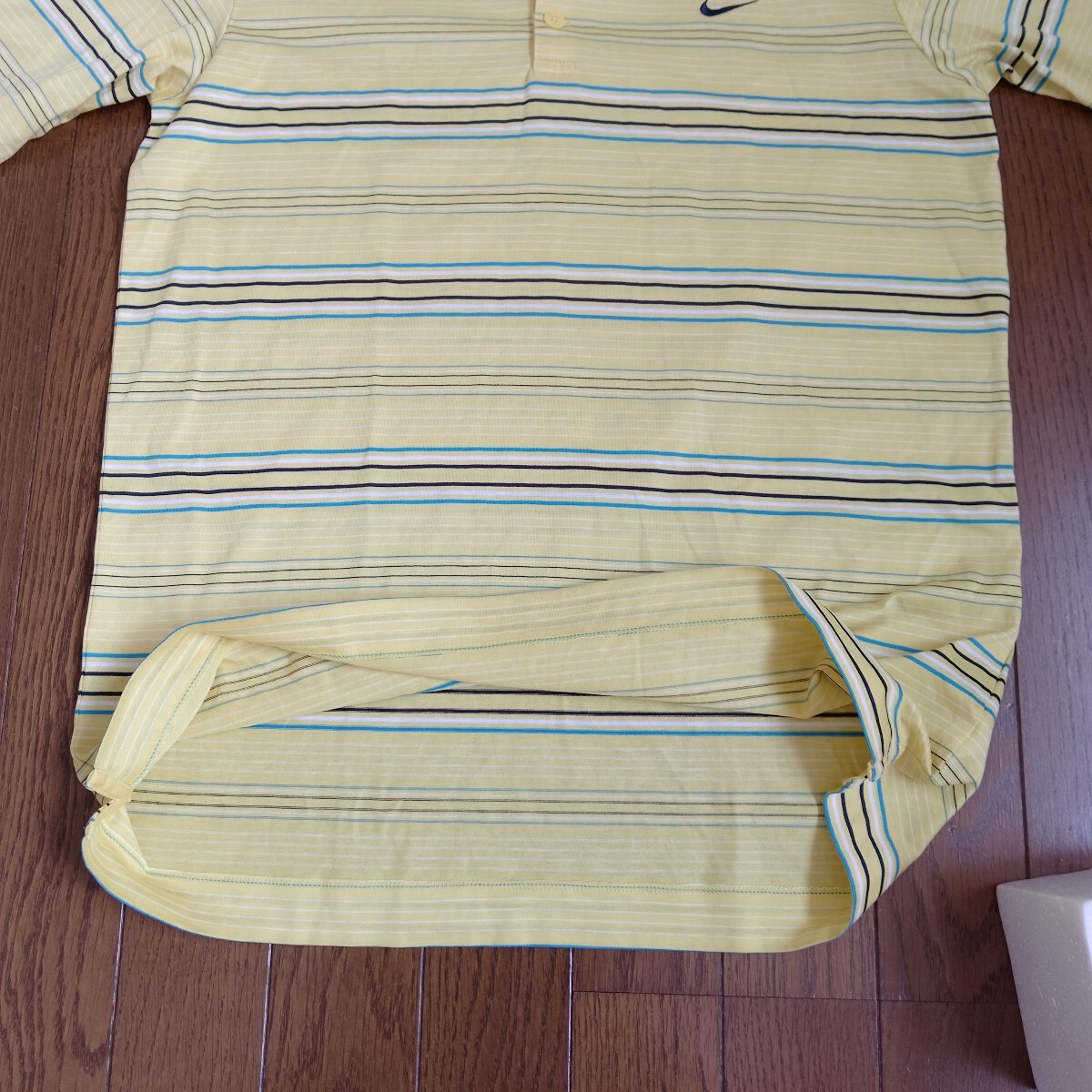 2055【中古】NIKE GOLF ナイキゴルフ ゴルフウェア 半袖ポロシャツ メンズサイズ L 黄色/緑/黒/白ボーダー柄 收藏
