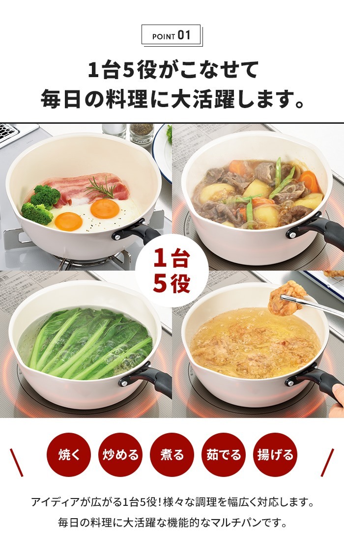 | マルチパン 18cm セラミック塗膜加工 オール熱源対応 一台5役 撥水性 調理鍋 片手鍋 深型 汚れにくい 調理器具 便利 片手鍋 なべ アルミ製 調理器具 IH対応 ガス火対応 マルチに使える 煮る 茹でる 揚げる 焼く 炒める 撥水性 消耗しにくい 安心 安全 白色 可愛い キッチン 台所 |