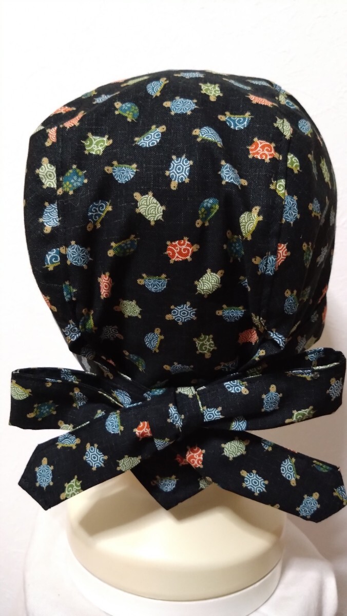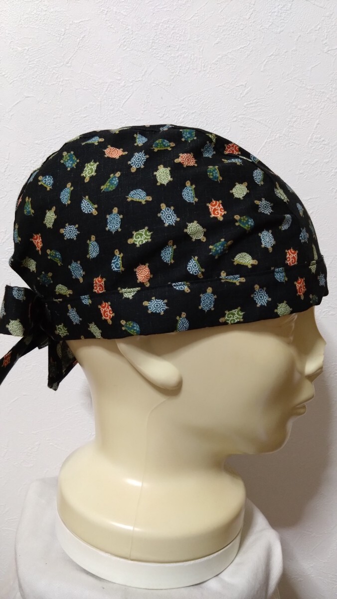 短★バンダナキャップ★ハンドメイド 和柄 亀 かめ カメ 黒 收藏