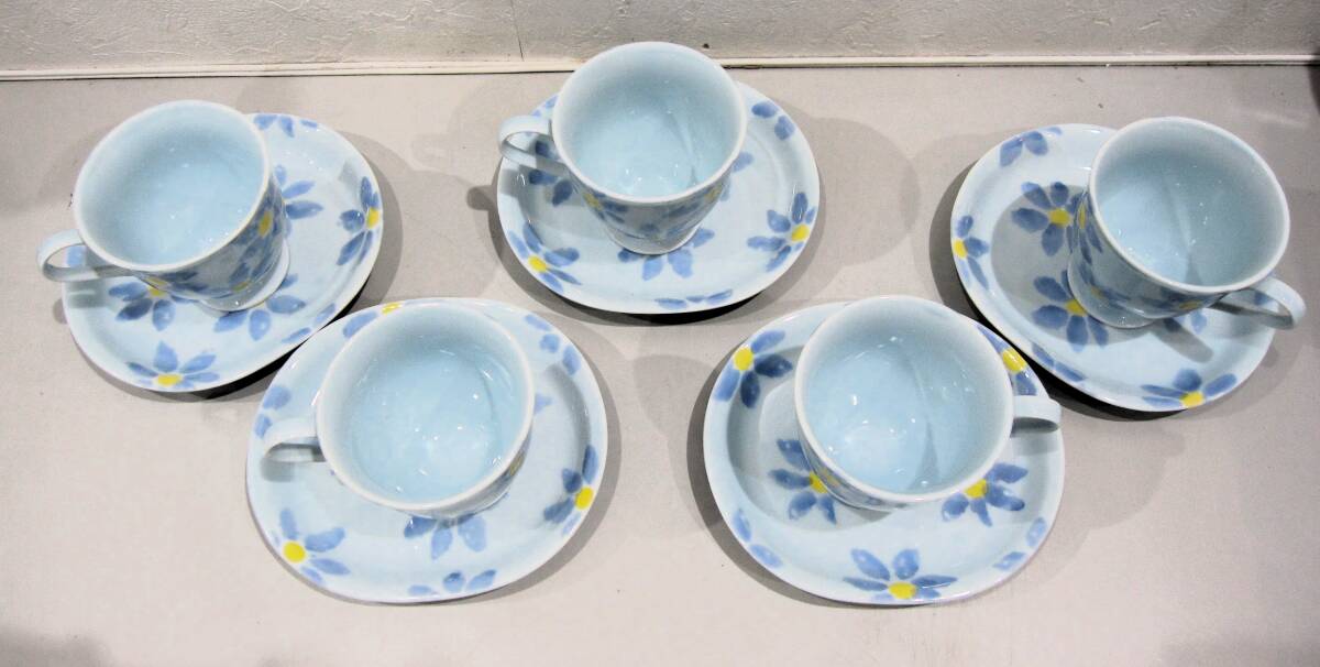 ★69423 コーヒー碗皿セット コーヒーカップ ソーサー 小花柄5客セット 来客用【長期保管・未使用品】 收藏