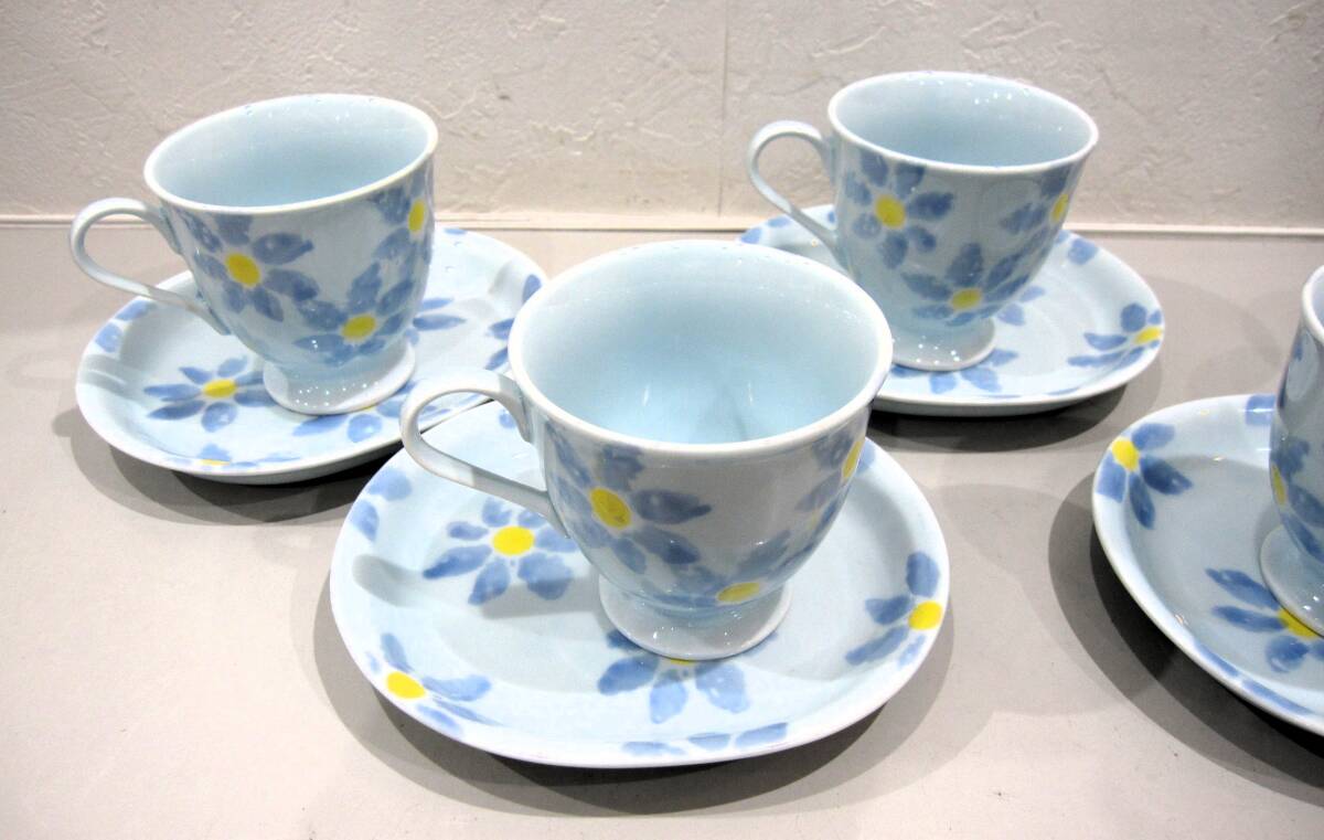 | ★69423 コーヒー碗皿セット コーヒーカップ ソーサー 小花柄5客セット 来客用【長期保管・未使用品】 | ||