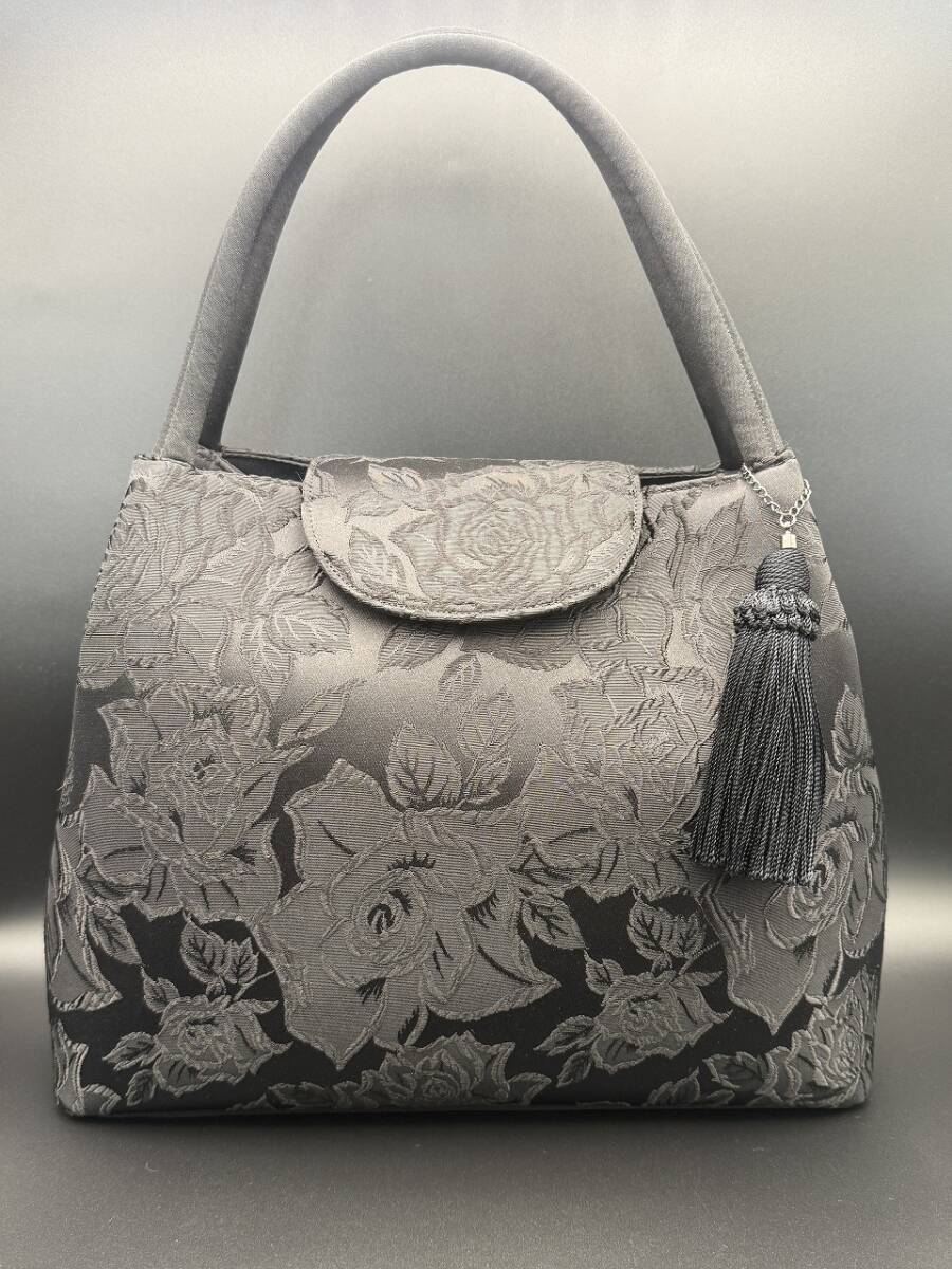 (26496)【美品】 IWASA/イワサ ハンドバッグ フォーマルバッグ 花柄 刺繍 冠婚葬祭 ブラック 現状品 收藏