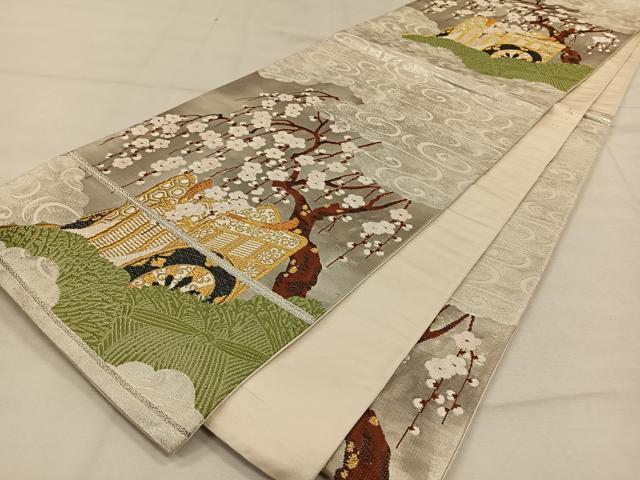 平和屋着物◎六通柄袋帯 御所車梅文 金糸 正絹 逸品 CAAW3555qv 收藏