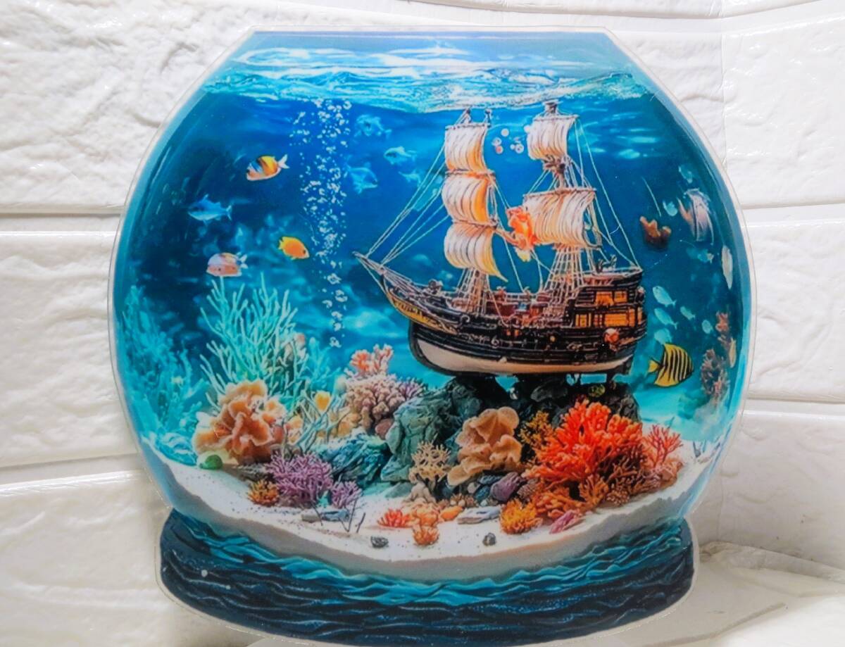 2D・漁礁の帆船に集う魚たち・立体描法のアクリルスタンド・出窓装飾・内から外から綺麗・サンキャッチャー・小型水槽のオブジェとしても 收藏
