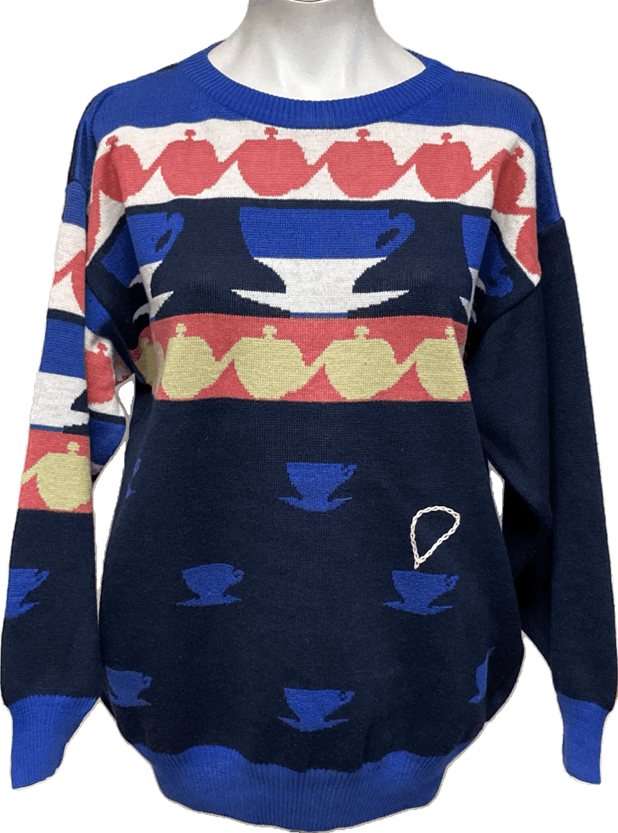 ☆ラグジュアリーニットLUXURY KNITS BY ELEGANCE S.A.PARIS ティーポット&カップ編み込みニットセーター ヴィンテージ 濃紺ブルー白☆ 收藏