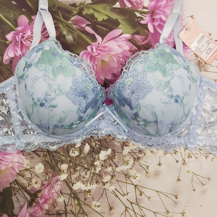 Zc8528◆新品 ブラショーツセット 【C85/LL】下着 ランジェリー 脇高 美谷間 美胸 フラワーリリー刺繍 水色 收藏
