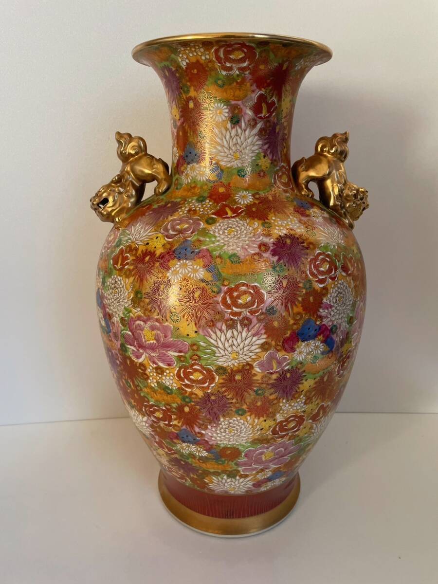 【和美】高さ46.2㎝ 九谷焼 光峰 錦彩花尽獅子耳付 大花瓶 本物保証 花瓶 壺 大壺 花器 15 收藏