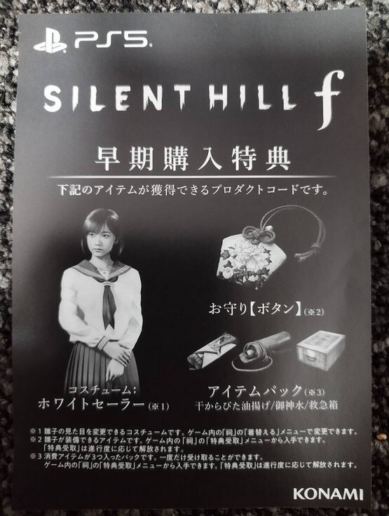 PS5 SILENT HILL f サイレントヒルf 早期購入特典DLC コード通知 收藏