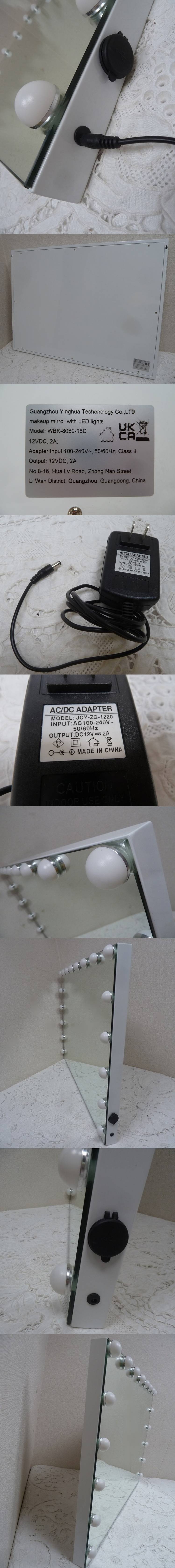 (☆BM)ハリウッドミラー①ホワイト 18灯 三段階 調光 LED照明 置き型 80㎝ 鏡 ドレッサー メイク 楽屋 プロ仕様 女優ミラー 卓上 收藏