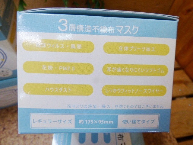 | 商品説明 こちらは100サイズでの発送を予定しております。 送料など詳細は「梱包・発送について」欄に記載しておりますので、そちらをご確認ください。 マスクを大量にまとめて出品です。 詳細は写真でご確認ください。 写真のものがすべてです(マスク以外のものはイメージのため、付属しません) こちらは未使用品になります。 家庭での保管品となりますので、写真をご確認の上での入札をお願いいたします。 詳細複数写真 ← Googleフォト リンク出来る場合写真はGoogleフォト 動画はYouTubeにリンクしてます この商品は A ランクです※梱包について※ 緩衝材を使用した梱包をご希望の場合は60~100サイズまで100円、120~170サイズまで300円を頂戴いたします。 落札時にご希望の旨を必ずご連絡下さい。ご連絡がない場合は簡易梱包で発送致します。 簡易梱包の場合、追加費用はかかりません。 ※簡易梱包は緩衝材等を使用しませんのでご了承下さい。 素人なりに配慮した梱包を心掛けております。 しかしながら配送中にどうしても欠け、ひび、割れ等発生する場合がございますが免責とさせて頂き、返金等は致しかねますのでご了承・ご了解の上ご入札下さい。 詳しくは梱包・発送についてをご確認下さい。 商品ランク(ランクの記載のない商品もございます)