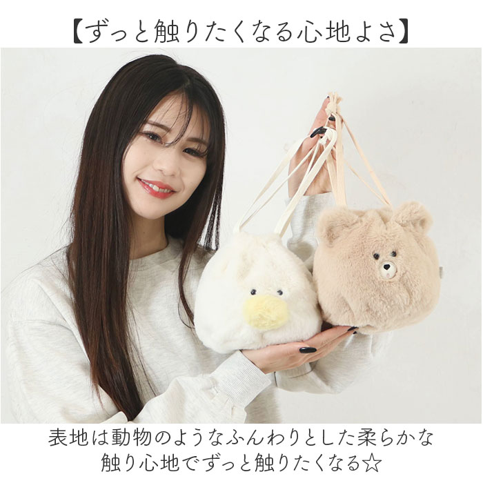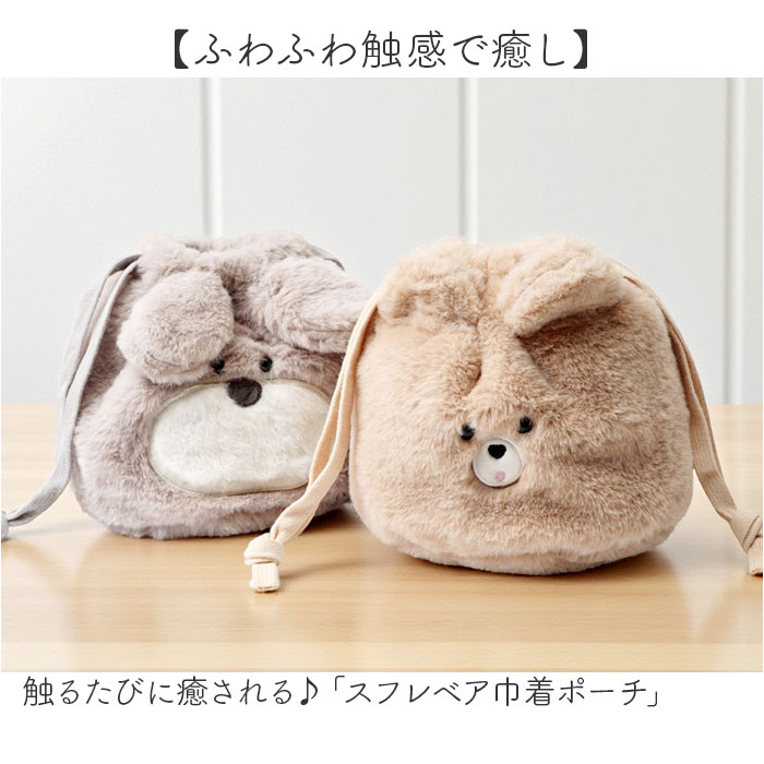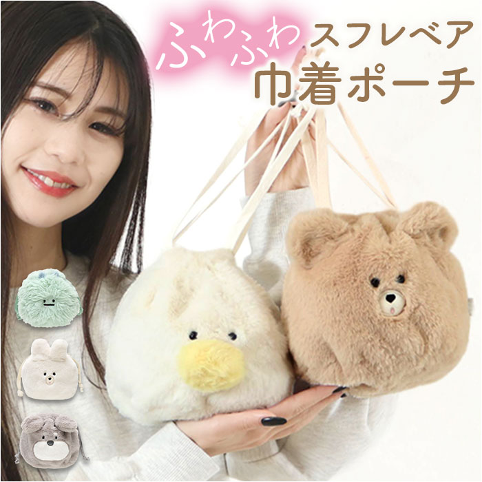 ☆ イエティ ☆ スフレベア巾着ポーチ アニマル 巾着 ポーチ 小物入れ 巾着袋 メイクポーチ 化粧ポーチ 袋 フェイスポーチ アニマルポーチ 收藏