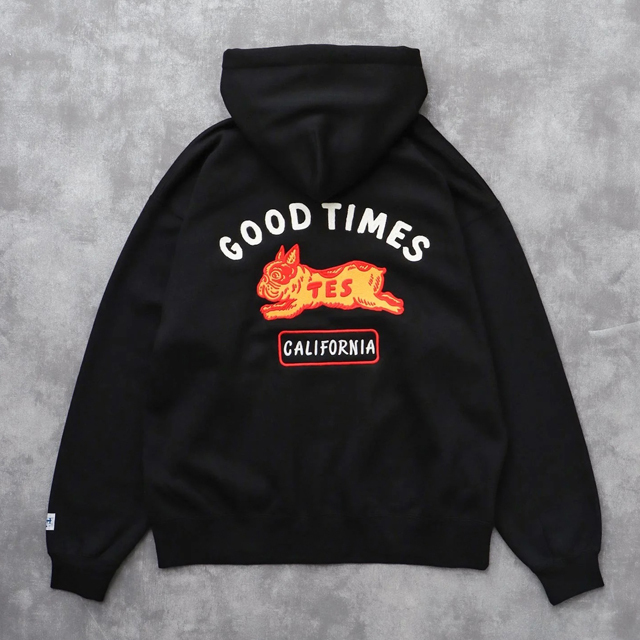 新品 Mサイズ The Endless Summer TES GOOD TIMES BIG SWEAT ZIP PARKA BLACK エンドレスサマー フレンチブルドッグ 刺繍 ジップ パーカ 收藏