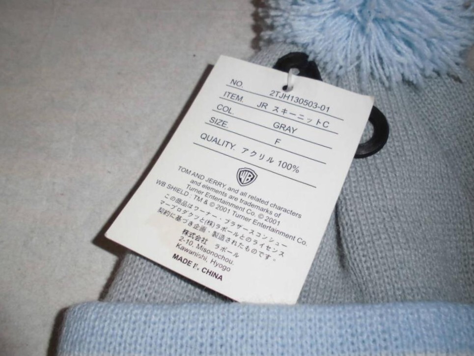 T004 TOM&JERRY トムとジェリー ジュニア用 スキー ニットキャップ 灰×水色 收藏