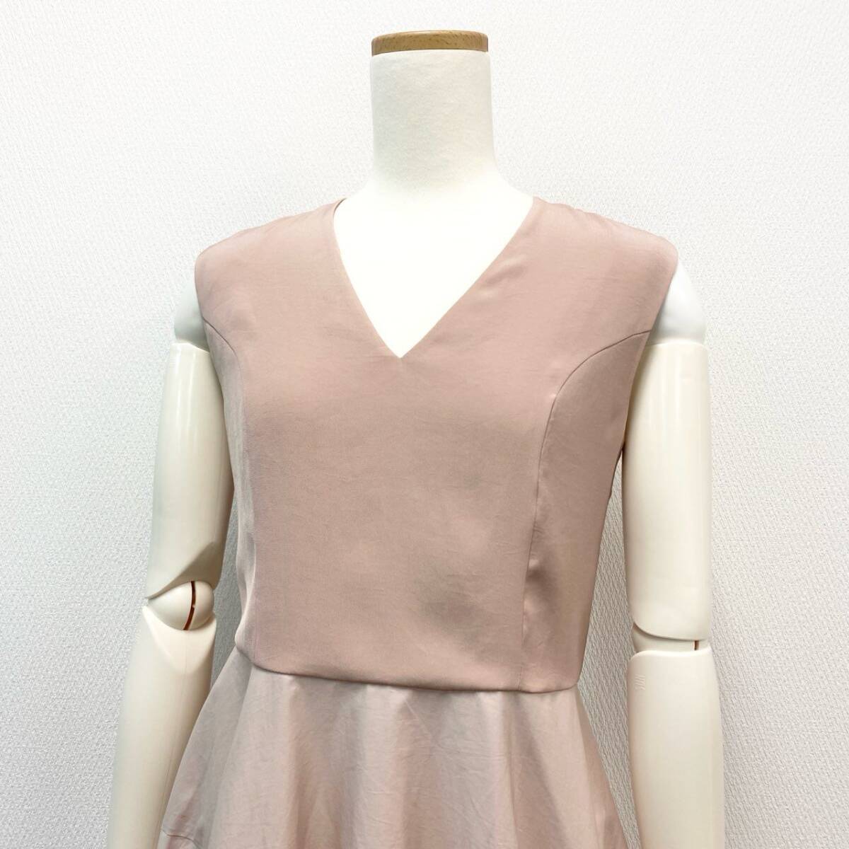 | スタッフ商品コメント | YOKOCHAN(ヨーコチャン)のノースリーブワンピース。やわらかなピンクベージュカラーが上品で、しっとりとした素材が高級感を演出します。デコルテを美しく見せるVネックデザインと、ふんわり広がるバルーンシルエットのスカートが女性らしい印象。シンプルながらも立体的な構造で、パーティーやお食事会など幅広いシーンで活躍します。 |
