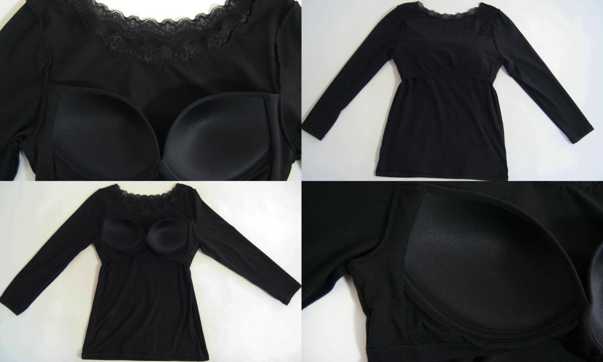 送料無料◆超お得◆2枚組◆綿混素材◆吸湿&発熱◆薄手タイプ◆外見せインナー◆モールドカップ付き◆長袖インナー(M/ブラック)SL-0408 收藏