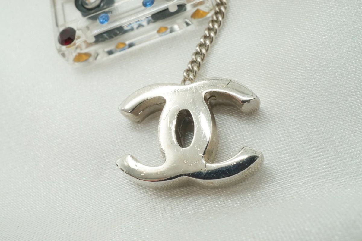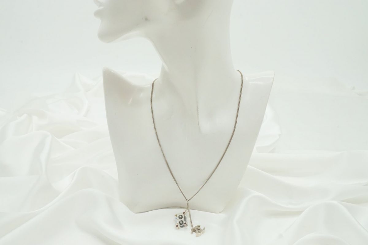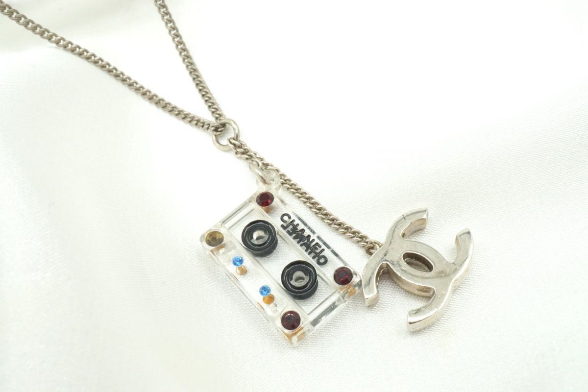 シャネル レア 04P ネックレス ココマーク カセットテープ スウィングチャーム カラーストーン装飾 銀 シルバー CHANEL 4060j 收藏