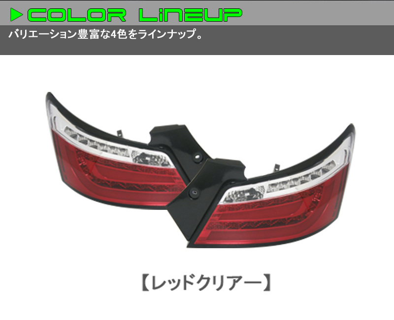 商品番号:S201RC 車種:QNC bB 商品名:LEDテール カラー:レッドクリアー ※落札後のカラー変更はご対応致しかねますので ご入札前に必ずカラーをご確認下さい。 他のカラーも出品中です。ページは【 こちら 】 ▼ 商品説明 クリスタルアイ QNC 20系 bB ファイバー LEDテールランプ 流れるウインカー仕様のV2が登場です。 ポジションONでファイバーが 明るく浮かび上がる最新のモデルになります。 ブレーキONでLED粒がコの字型に点灯。 ウインカーは、 高輝度LED(ハイフラ防止抵抗内蔵)の 流れるウインカーでリアビューを 高級欧州車のように飾ります。 ▼ 商品詳細 ■新品左右セット ■流れるウインカー高輝度LED ■ハイフラ防止抵抗付属 ▼ 対応車種 トヨタ QNC bB オールモデル(QNC20/21/25系) ![]()