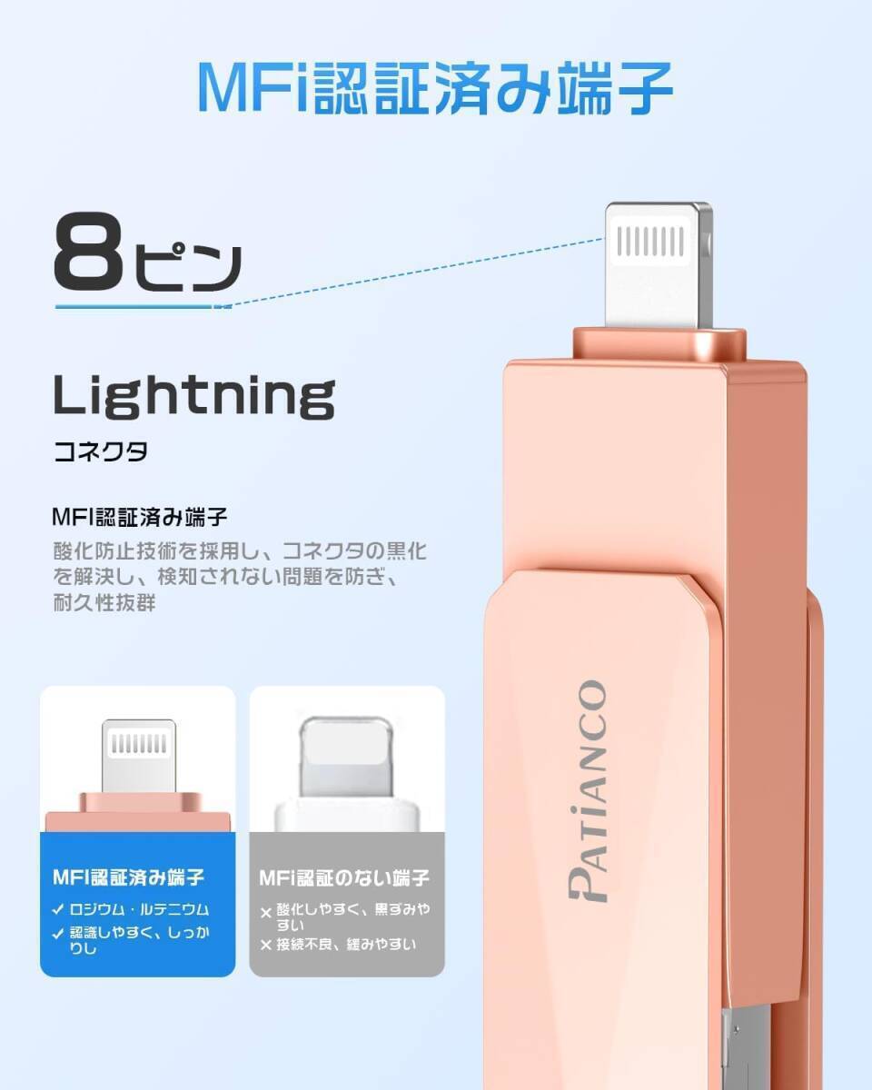 512GB【MFi認証品 セキュリティ機能付】USBメモリ Patianco iPhone用 3in1 usb lightning/USB/Type-C搭載 收藏