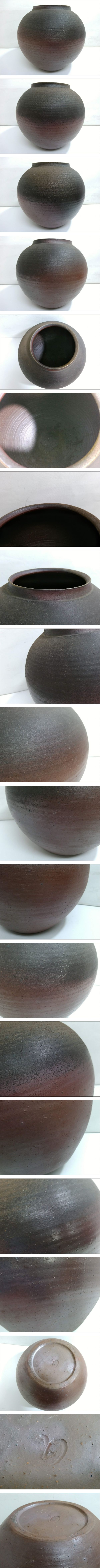 【うぶだし】備前焼 延原勝志 造 飾壷/高さ約29cm/胴径約30cm/花瓶/花器/花入/花生/華道具/陶印/生け花/飾り壺/茶道具/作家もの/LHQ27-10 收藏