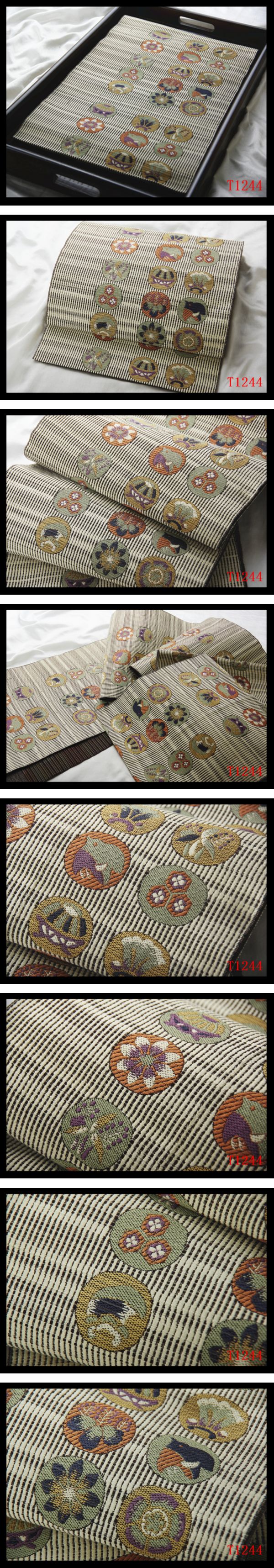 蔵【T1244】厳選逸品 花鳥の丸紋 象牙色地 気品豊かに 正絹高級美術開き名古屋帯 ◇検簪着物袋帯和装小物帯締め 收藏