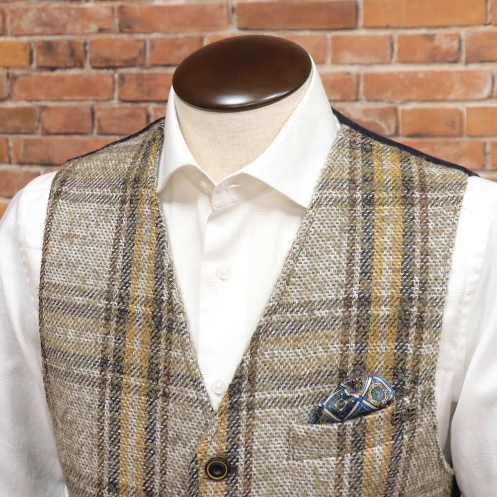 秋冬/BOB/50サイズ/ベスト 074731224 ウール混ブークレーツイード チェック柄 イタリア製 新品/ベージュ/me129/ 收藏