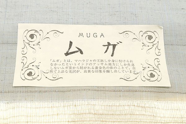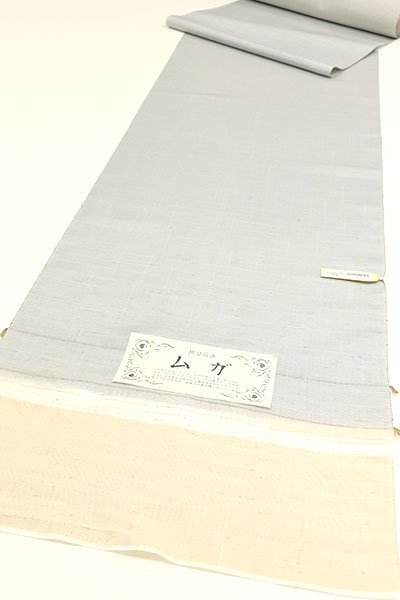 「ムガ」とは、マハラジャの王族しか身に付けられなかったというインドのアッサム地方にしか生息しないムガ蚕から紡がれる黄金色の糸のことで、自然で上品な光沢が、高貴な印象を醸し出しています。 しなやかで柔らかな生地は、 灰青色のお色目でございます。