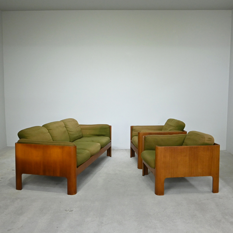 小キズや表面的な傷み、突板の欠け、クッションにヘタリ、張り地に薄汚れや色褪せ、破れやホツレなどが見られますが、構造的な問題はありません。