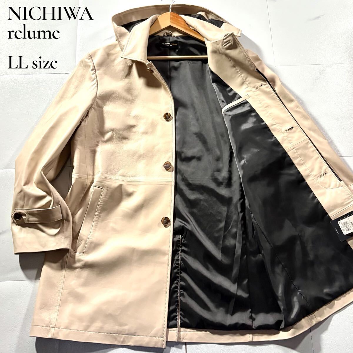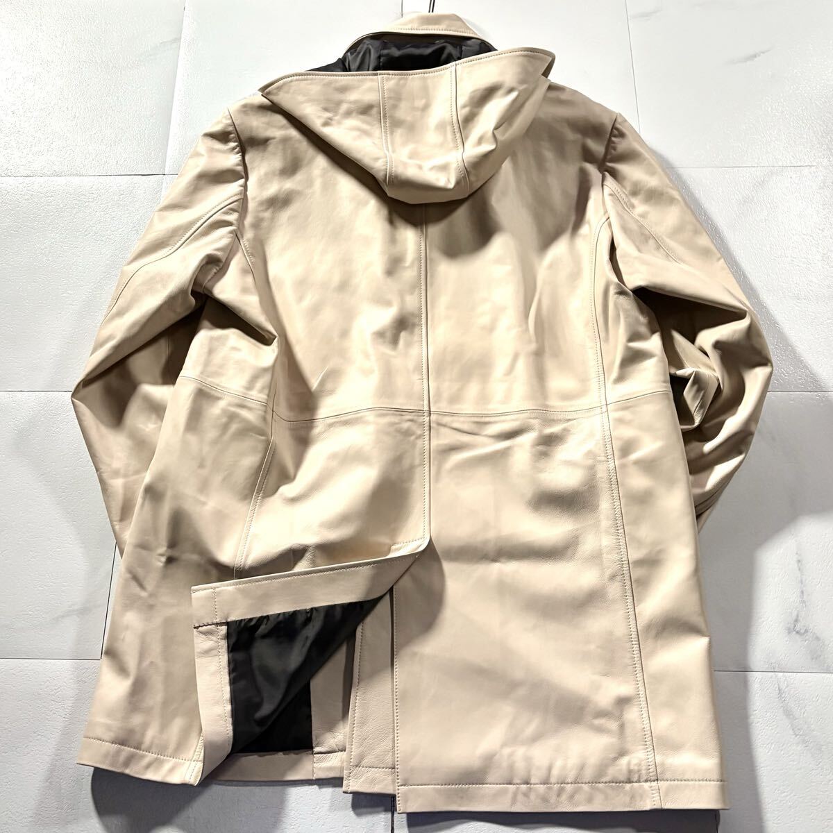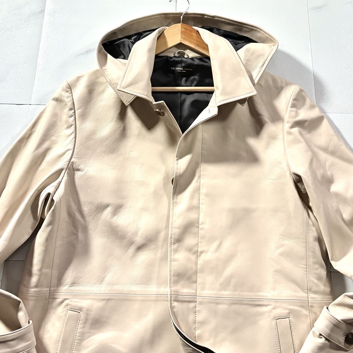 新品タグ付き/XLサイズ●定価9.7万 NICHIWA relume ニチワ レリューム 羊革 ラムレザー ステンカラーコート フード ジャケット ベージュ LL 收藏