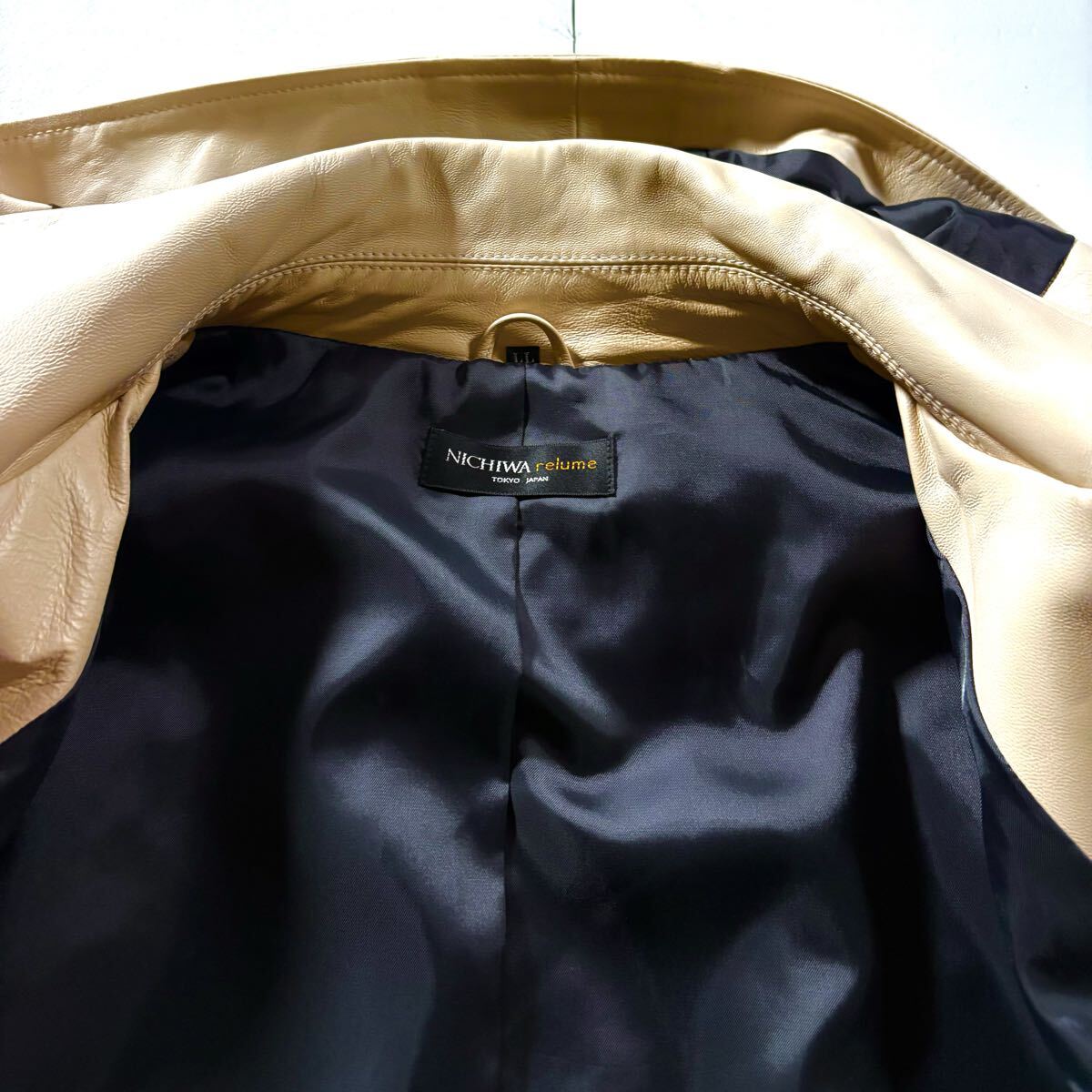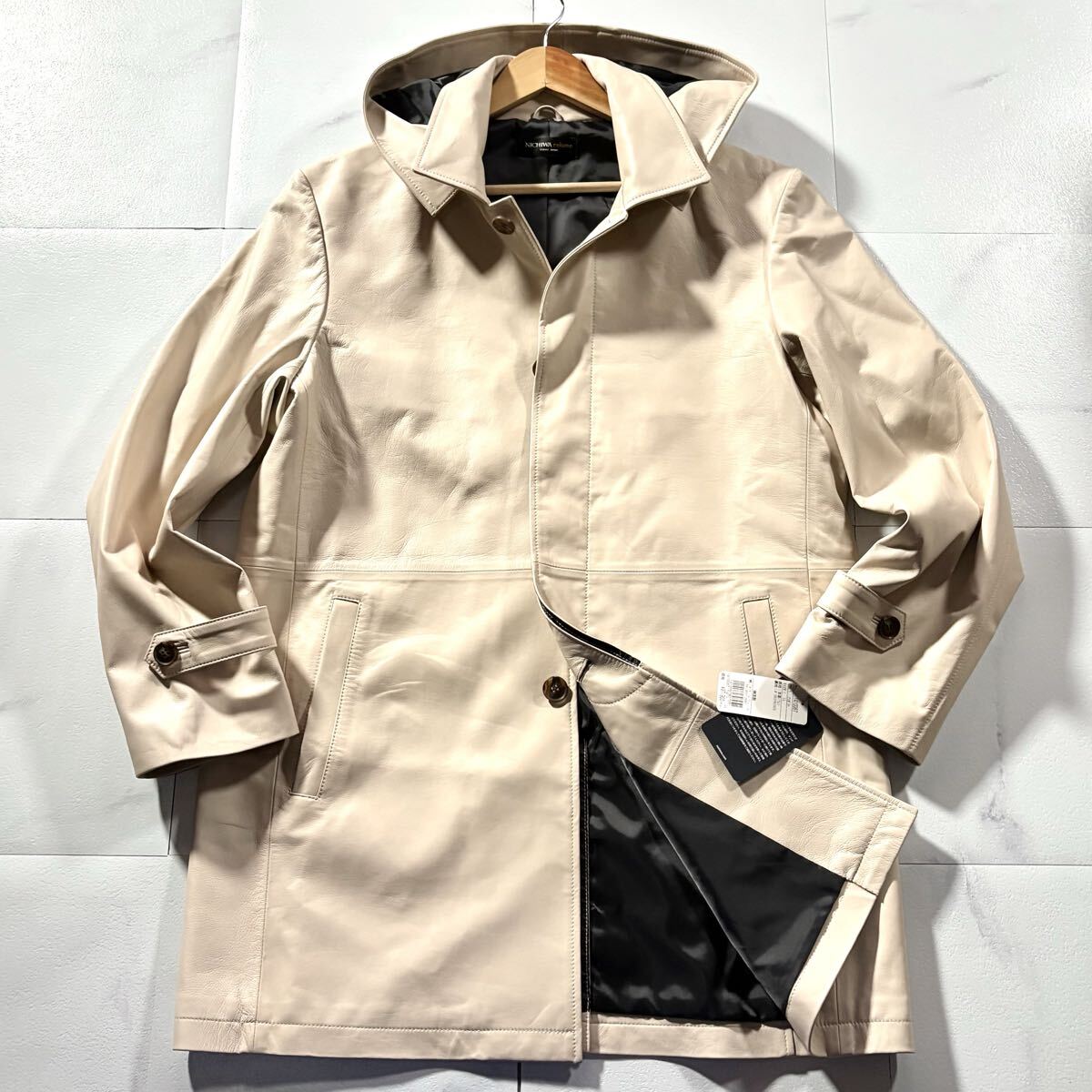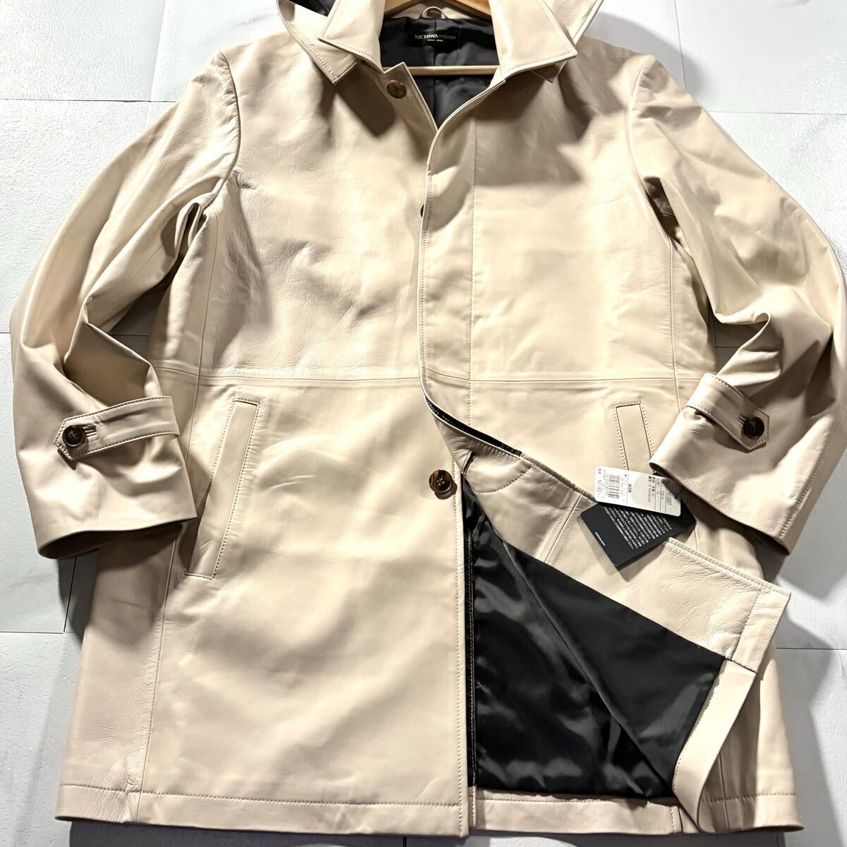 新品タグ付き/XLサイズ●定価9.7万 NICHIWA relume ニチワ レリューム 羊革 ラムレザー ステンカラーコート フード ジャケット ベージュ LL 收藏